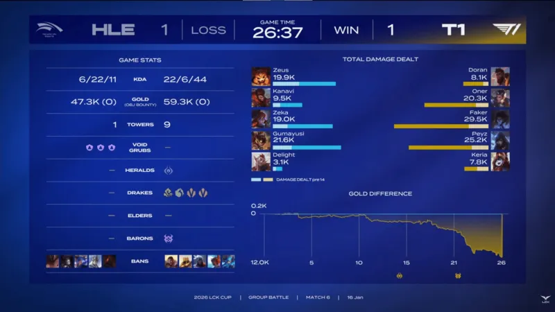 T1 1-1 HLE:Faker末选塞拉斯大杀四方;T1轻取HLE扳平比分
